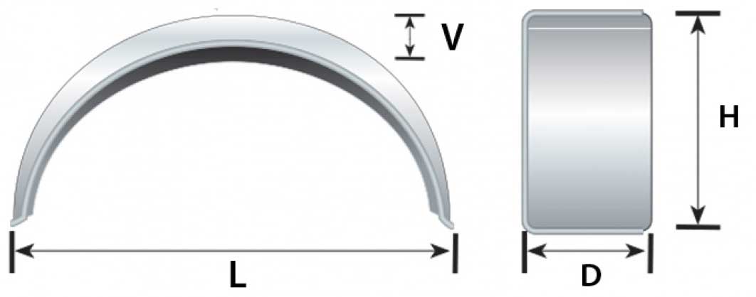 Fully galvanised 8" Steel trailer mudguard with rolled edges for safety and rigidity